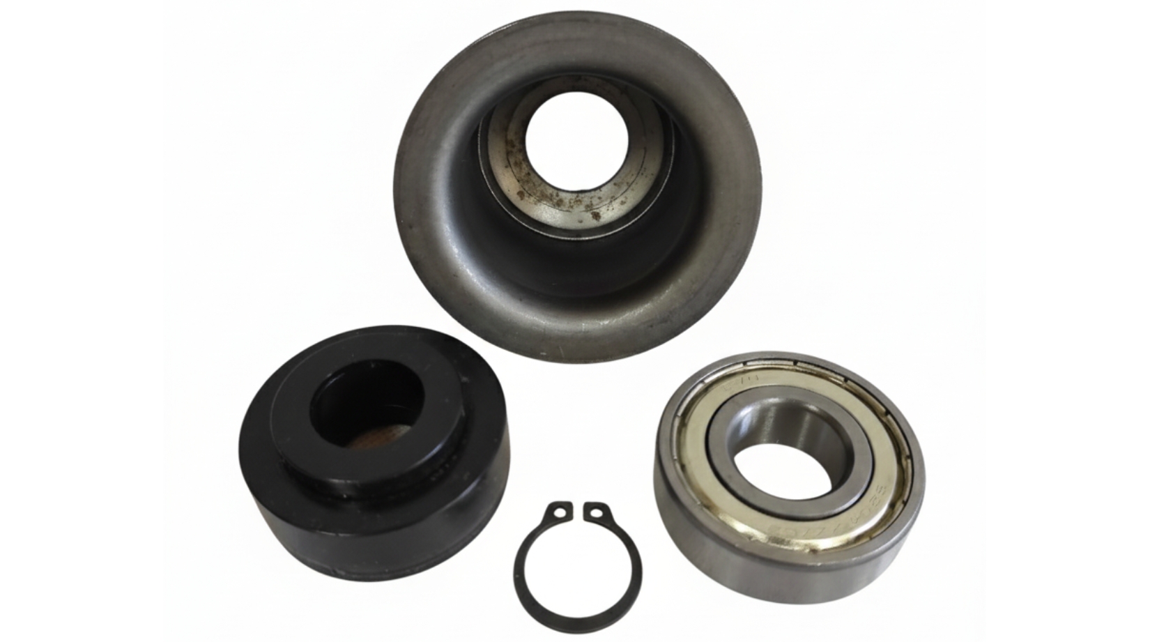 | 4. Pierścienie zabezpieczające / zaciskowe | Metal (pierścienie Segera) lub gumowe. | Stabilizacja węzła: Utrzymują cały pakiet (piasta-łożysko-uszczelnienie) w stałej, niezmiennej pozycji na osi krążnika, zapobiegając luzom i przesunięciom. |